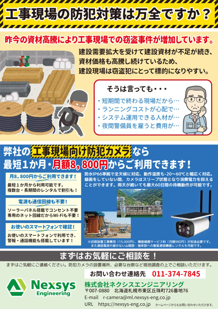 工事現場向け防犯カメラレンタルサービスを開始しました 。